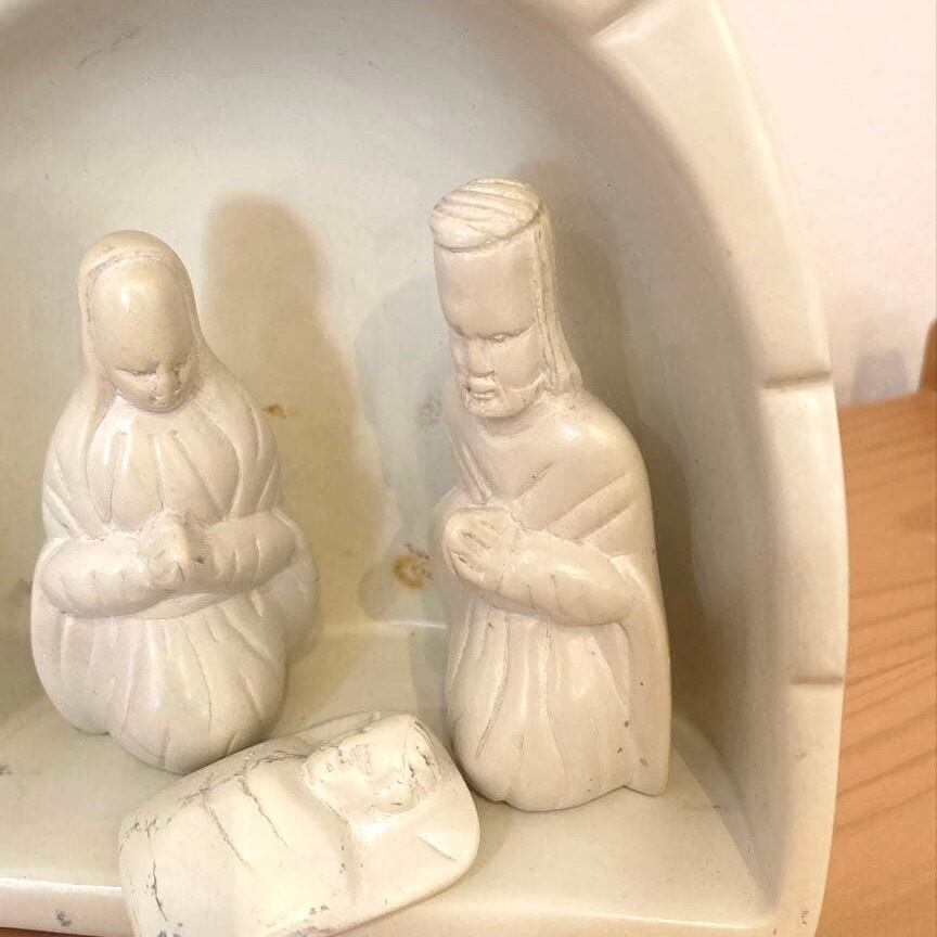 キリスト降誕の場面をかたどった素朴な印象のオブジェ。