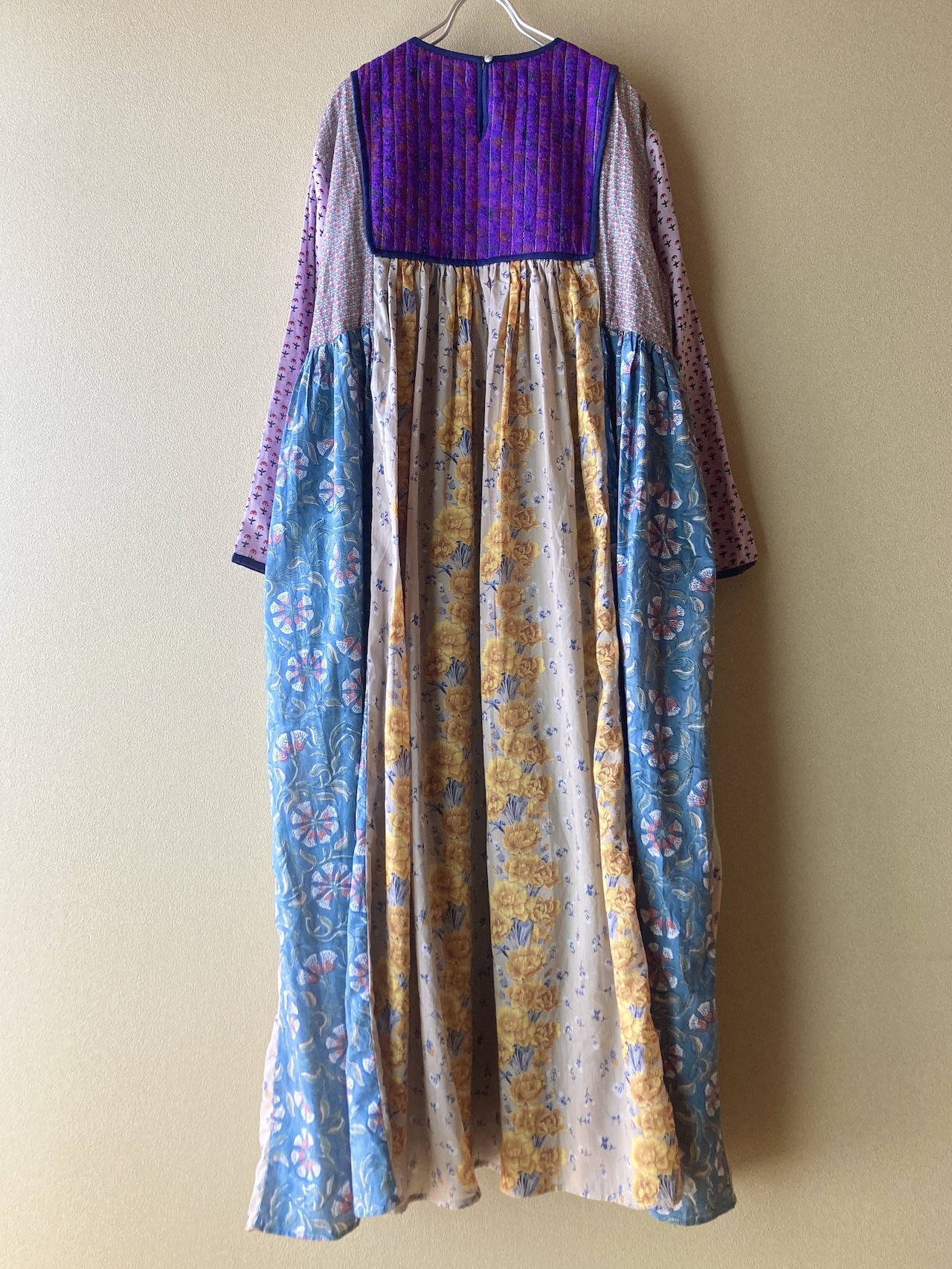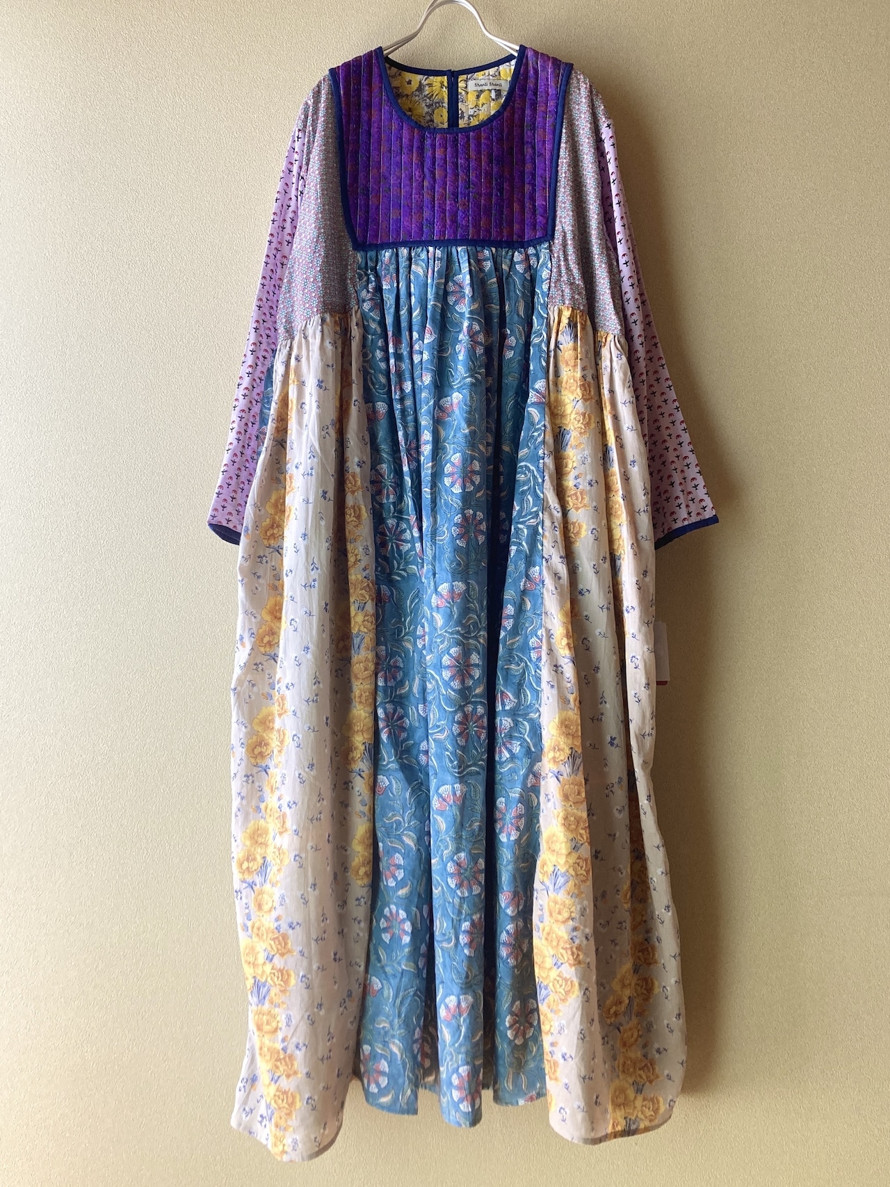いろいろな色の生地の組み合わせが楽しいワンピース。