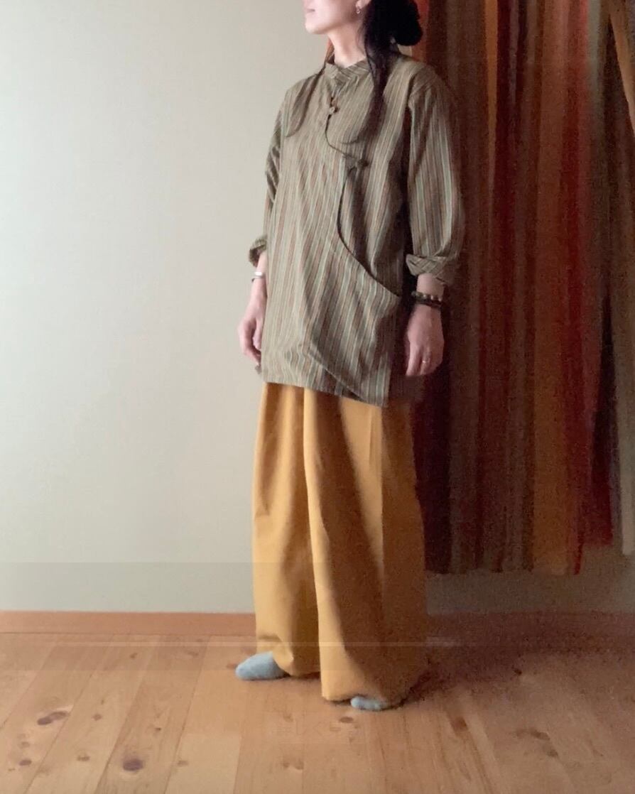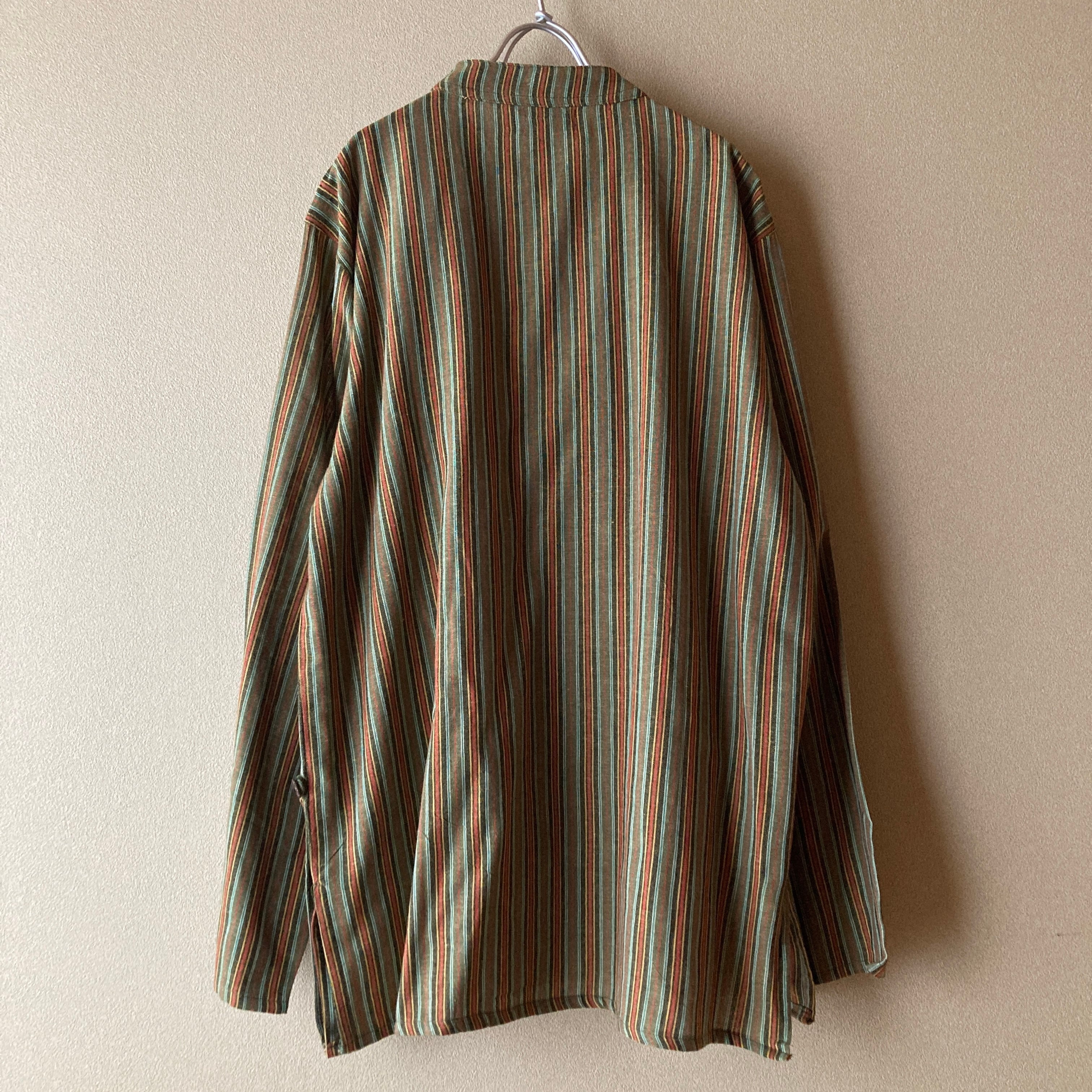 ネパール コットンのクルタ グリーンストライプ