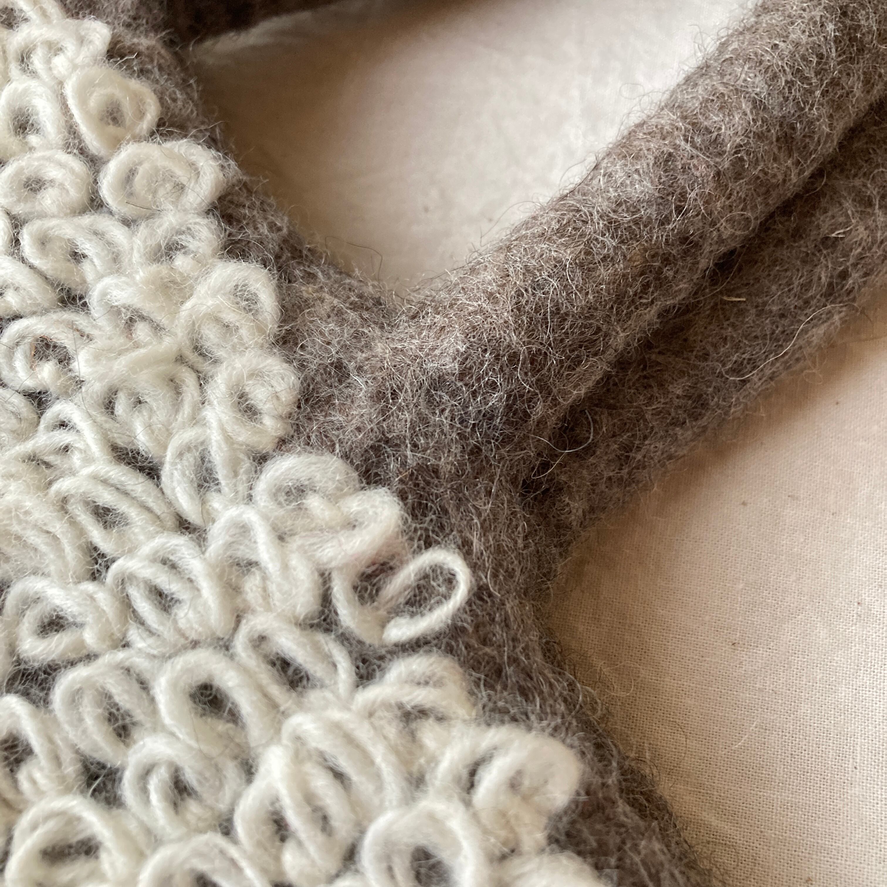 とぼけた表情の羊がかわいい、フェルトのハンドバッグ。