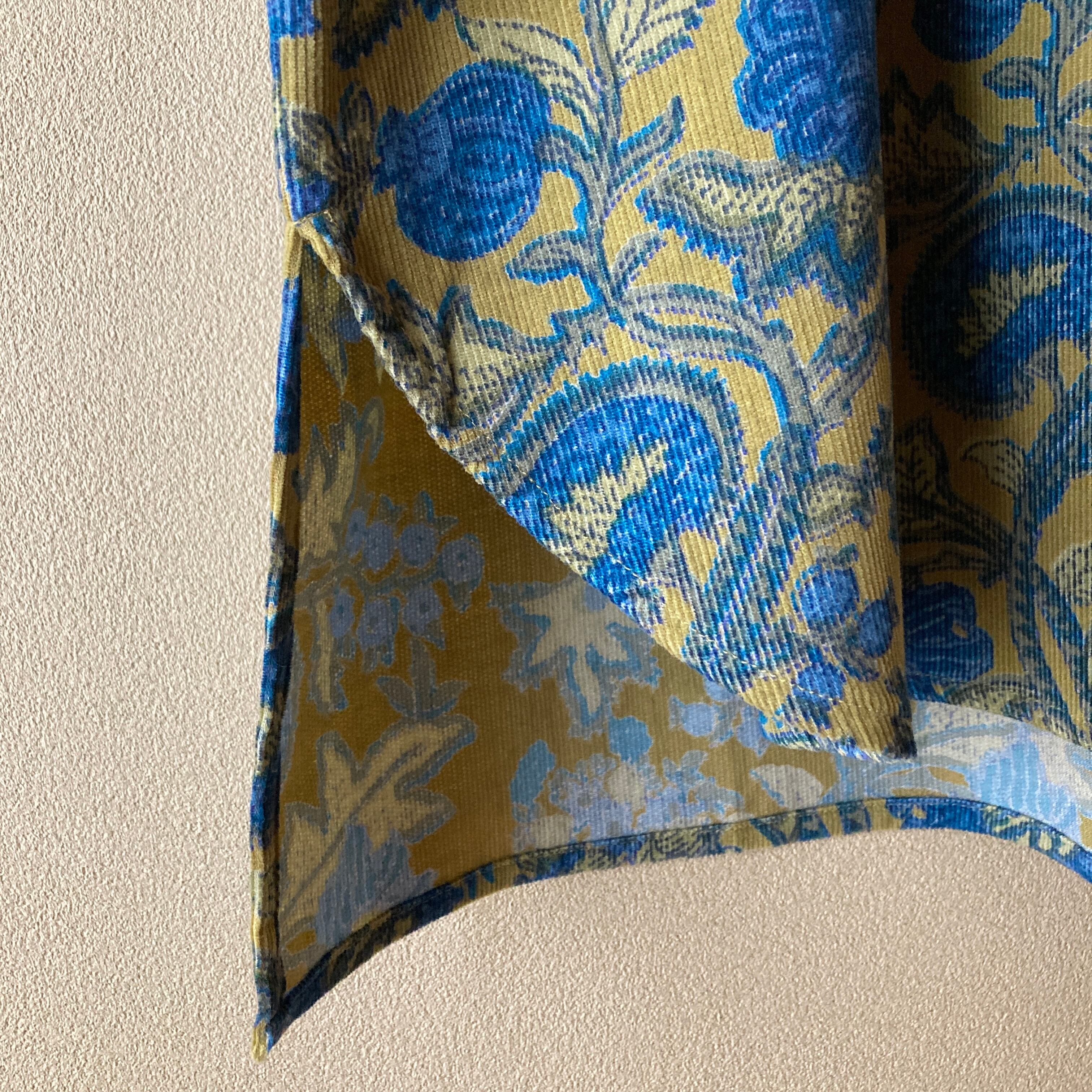 コットンのコーデュロイに、インドらしい柄を乗せた生地です。