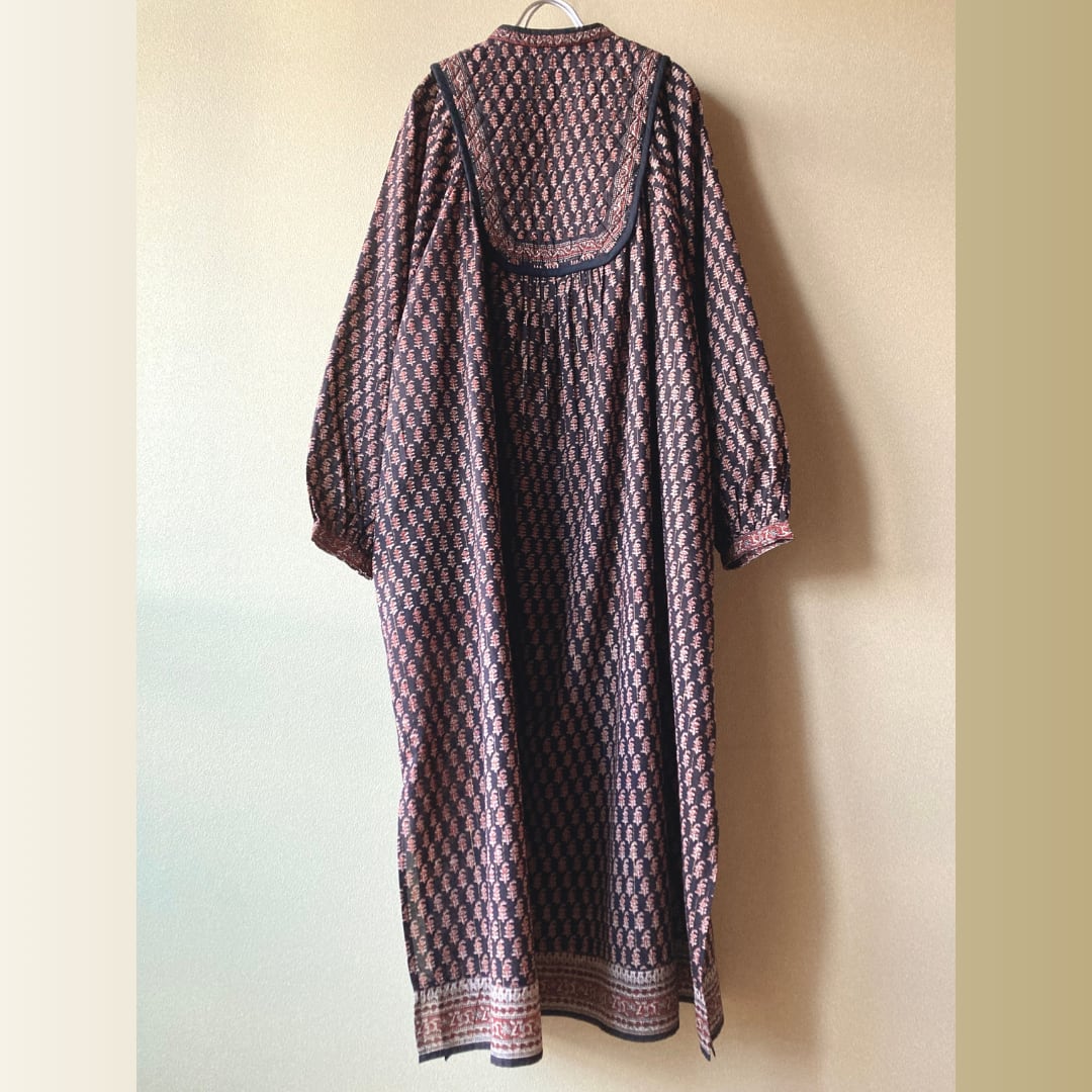 ブロックプリントのインド綿ワンピースの王道のデザインです。