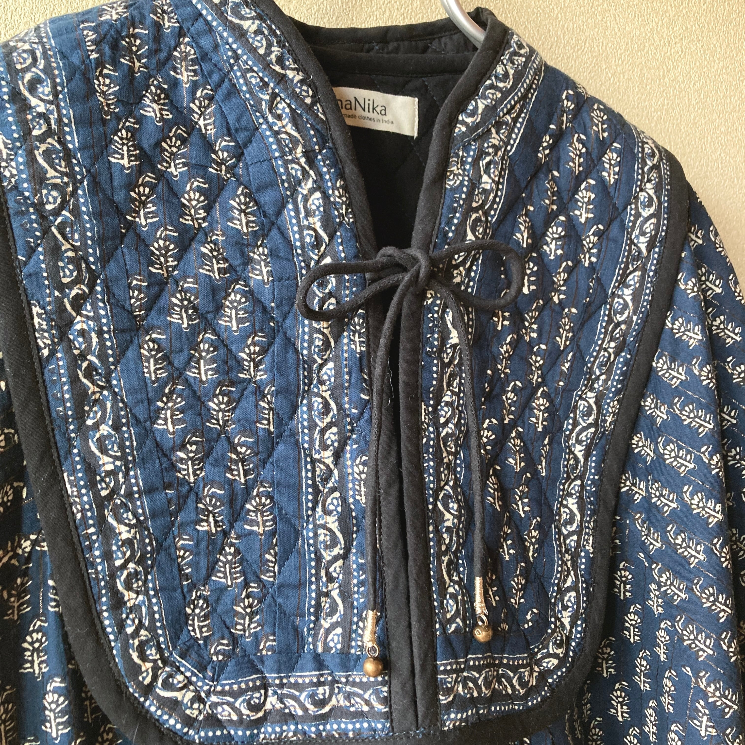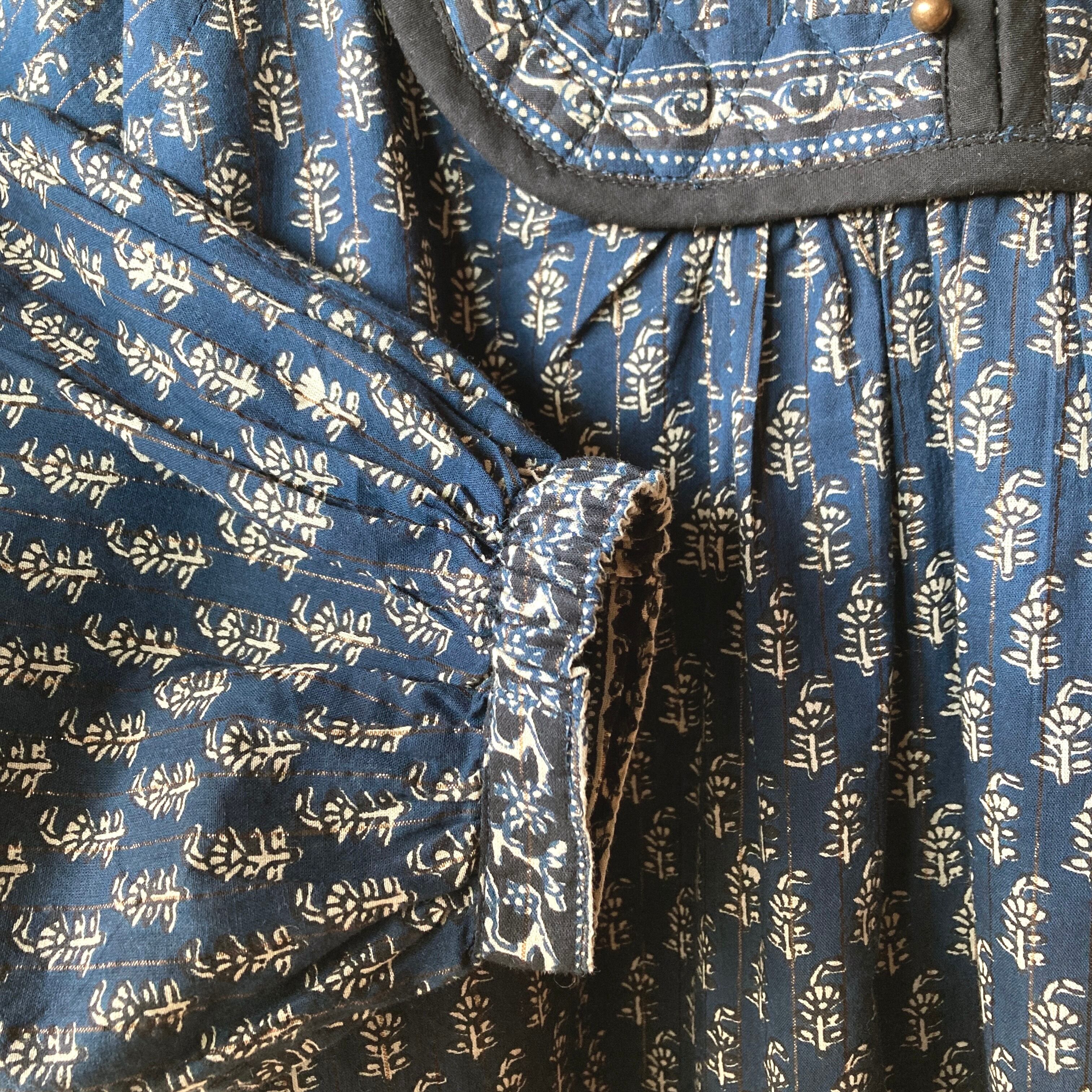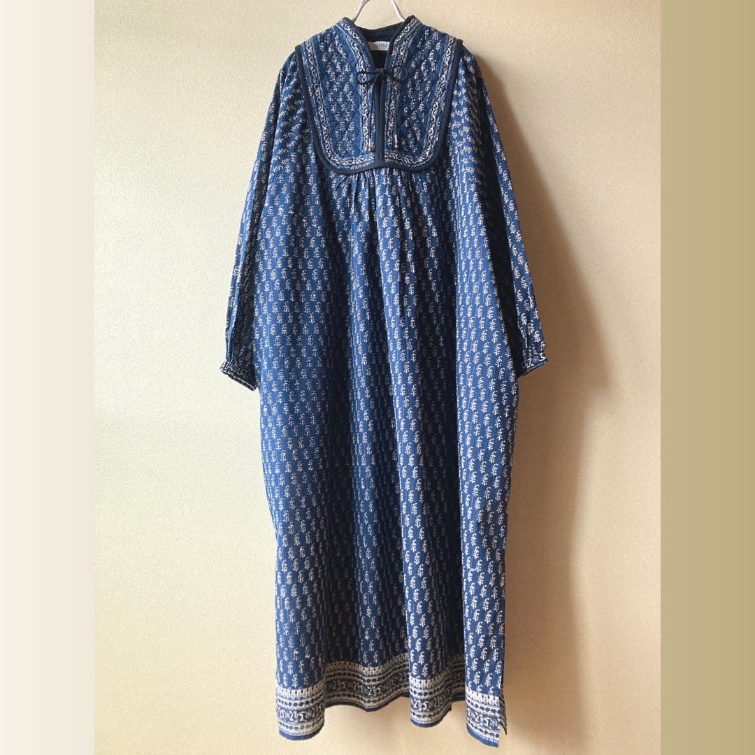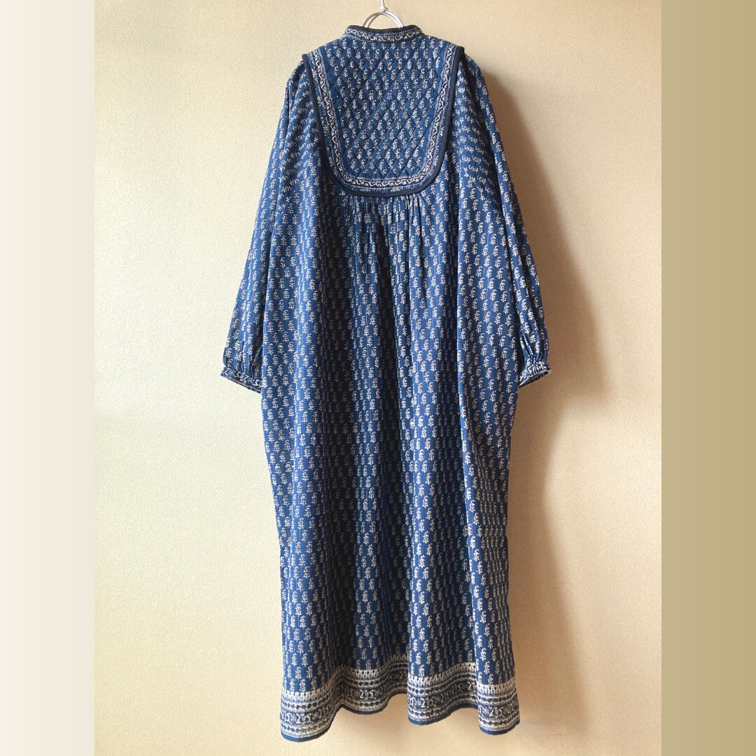 インド キルトヨークのワンピース ネイビー