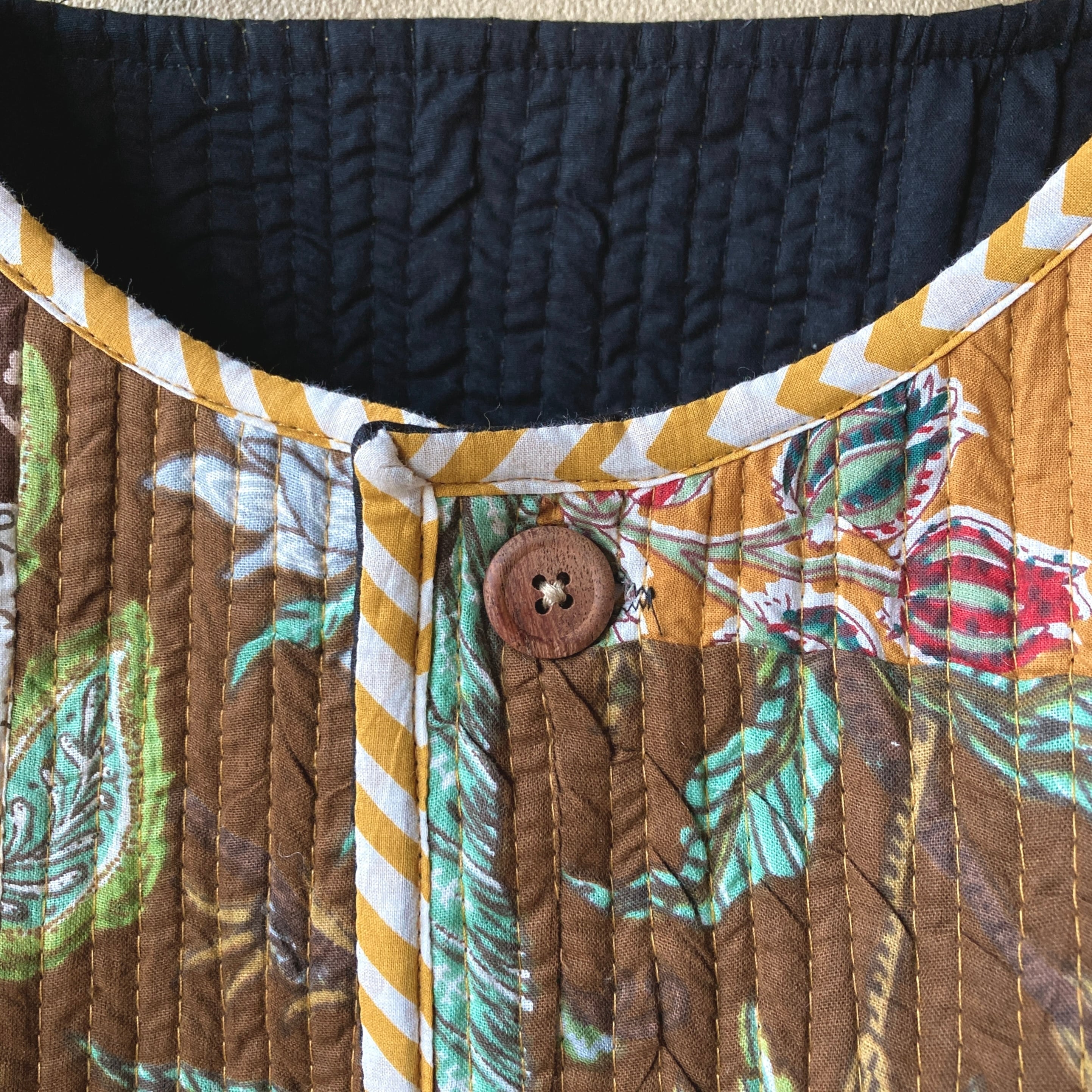 インド パッチワークキルトのリバーシブルコート ブラウン×ブラック
