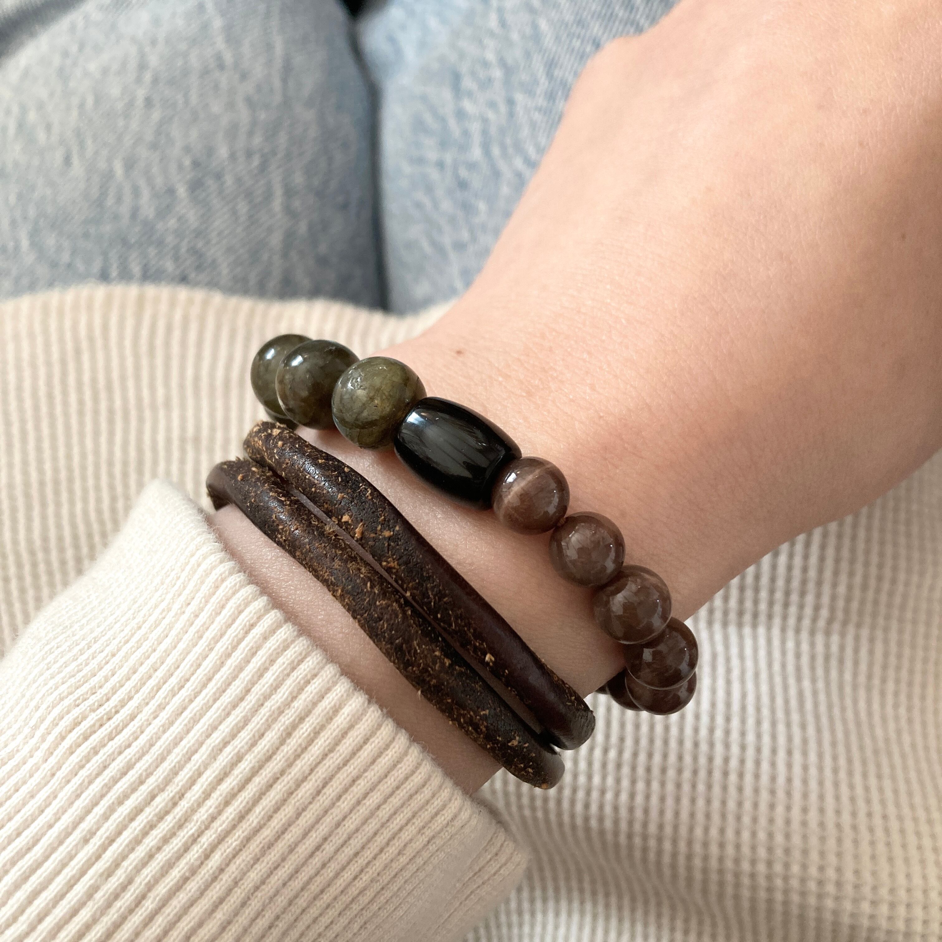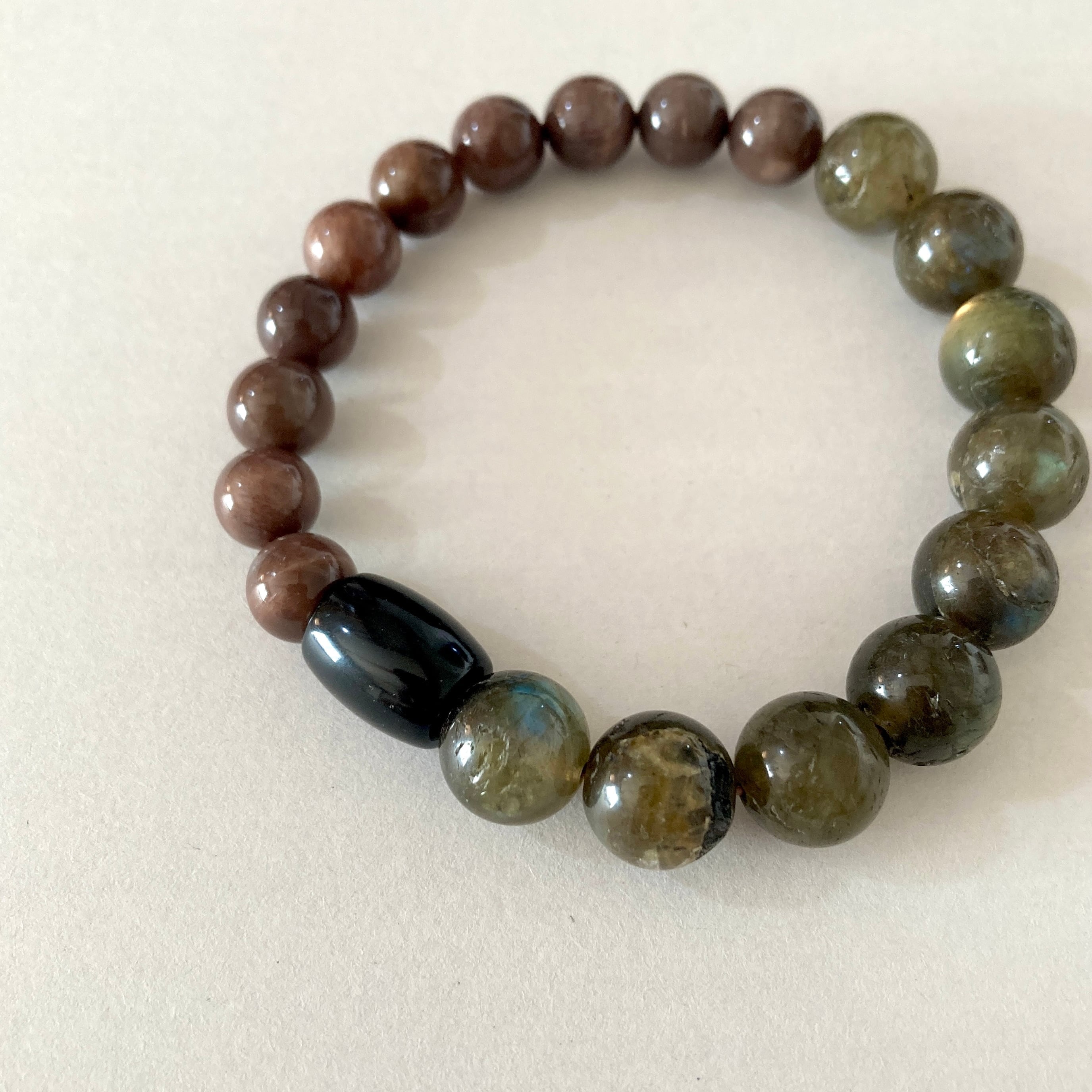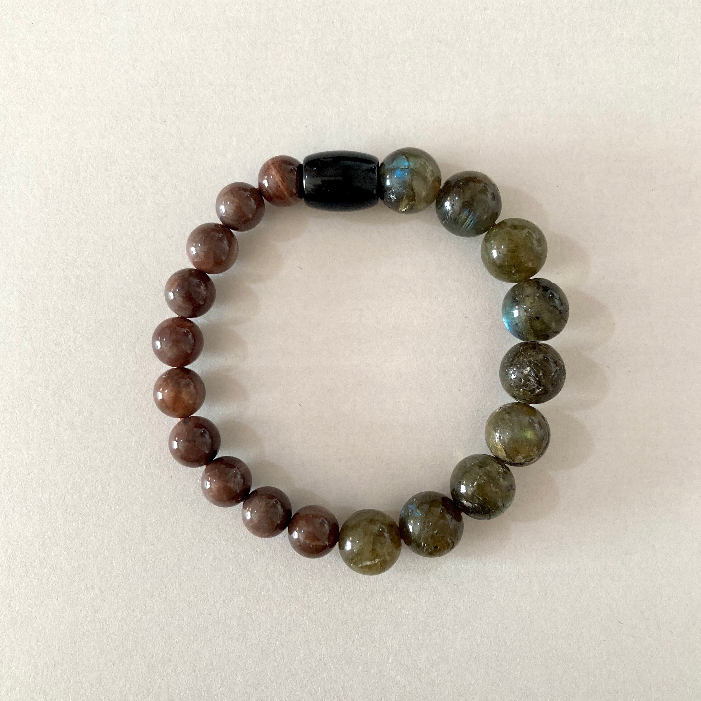 ラブラドライト/ブラウンムーンストーン/オブシディアンのブレスレット
