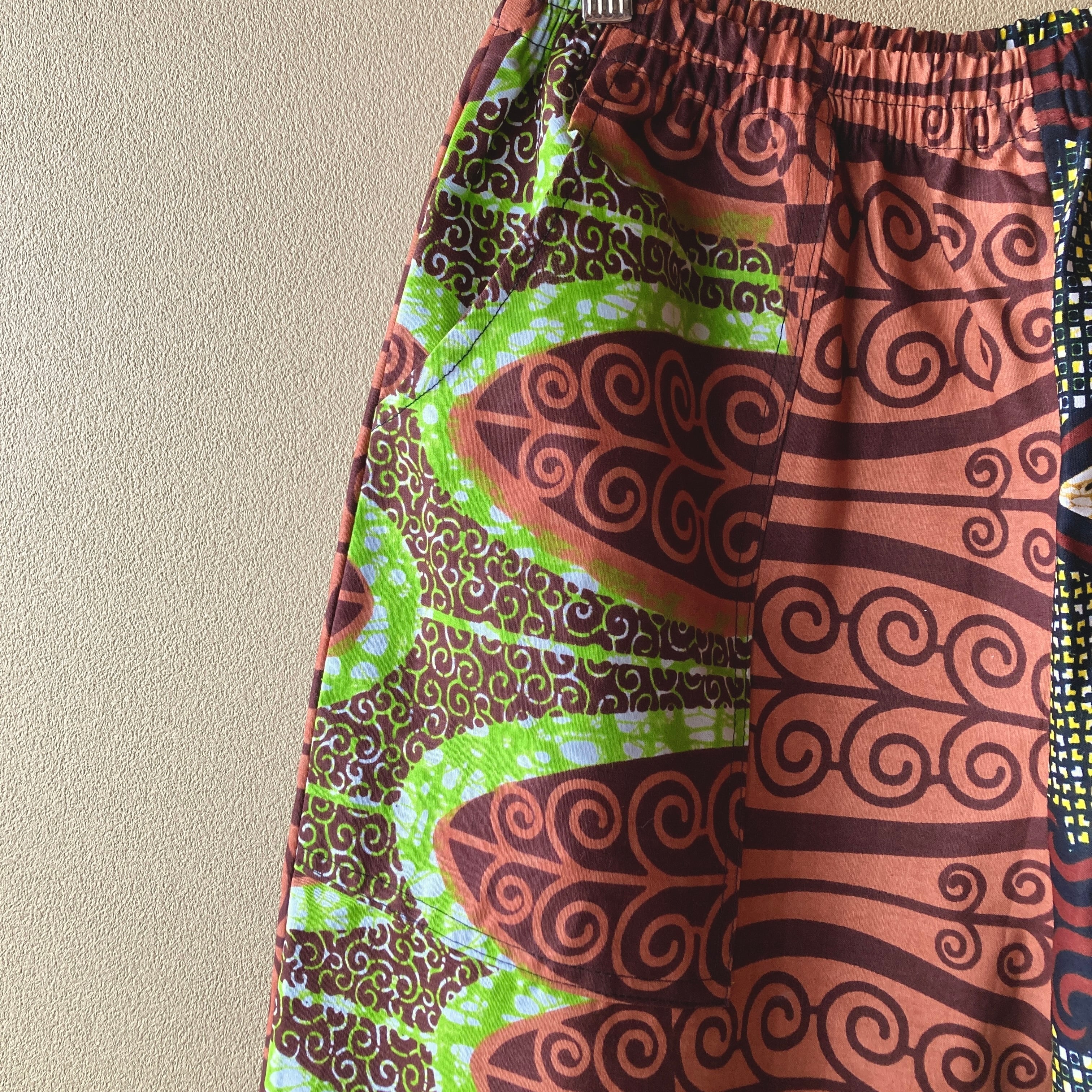 アフリカ柄の切り替えイージーパンツ ブラウン