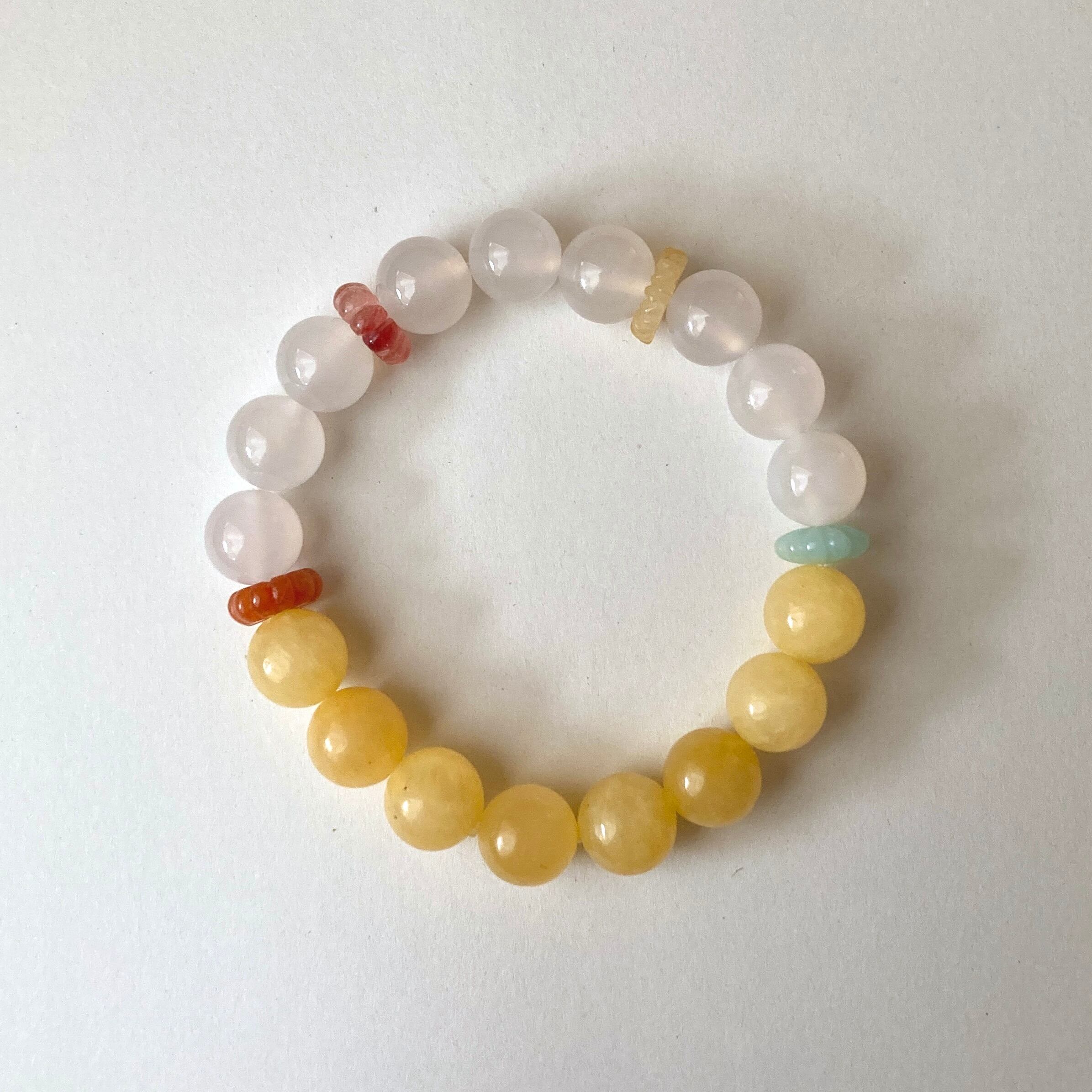 アラゴナイト/ホワイトオニキス/お花のビーズのブレスレット